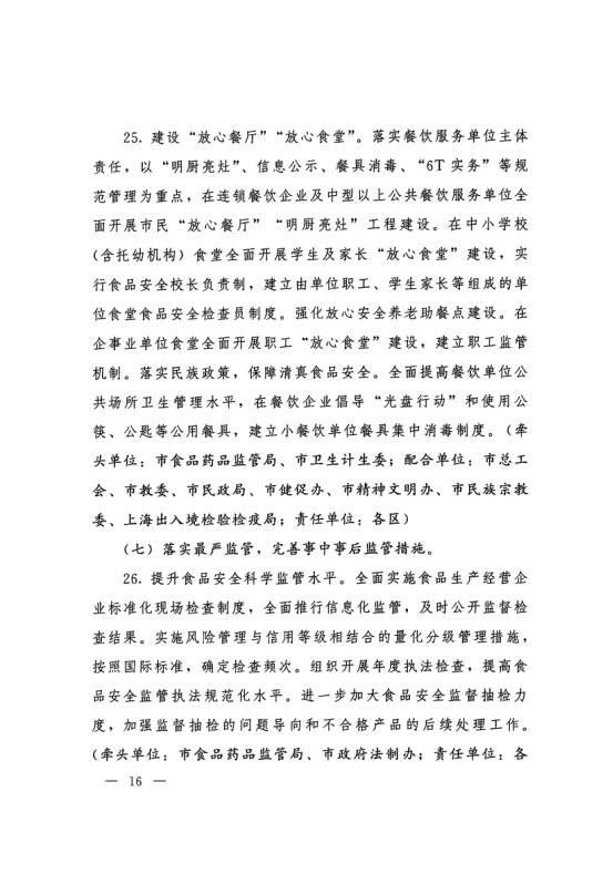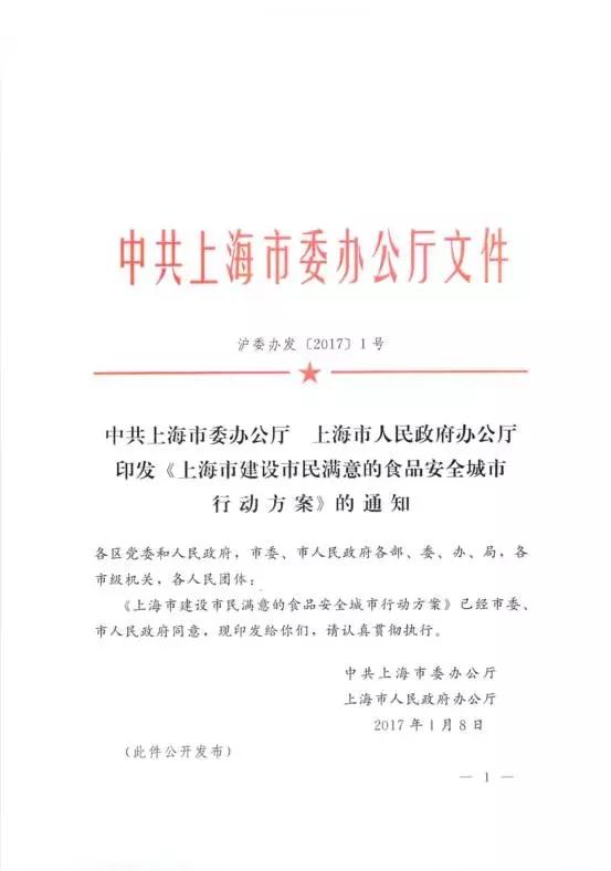 中共上海市委办公厅 上海市人民政府办公厅印发《上海市建设市民满意的食品安全城市行动方案》的通知
